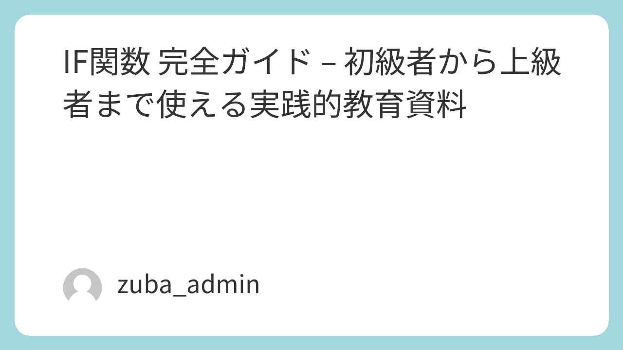 IF関数 完全ガイド – 初級者から上級者まで使える実践的教育資料
