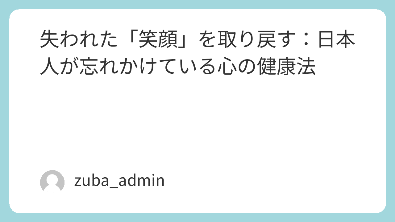 #笑いの効果 #ストレス解消法 #メンタルヘルス #免疫力向上 #幸福度 #笑いと健康 #脳内物質 #NK細胞 #セルフケア #ウェルビーイング #ポジティブ心理学 #日本人の幸せ #コミュニケーション能力